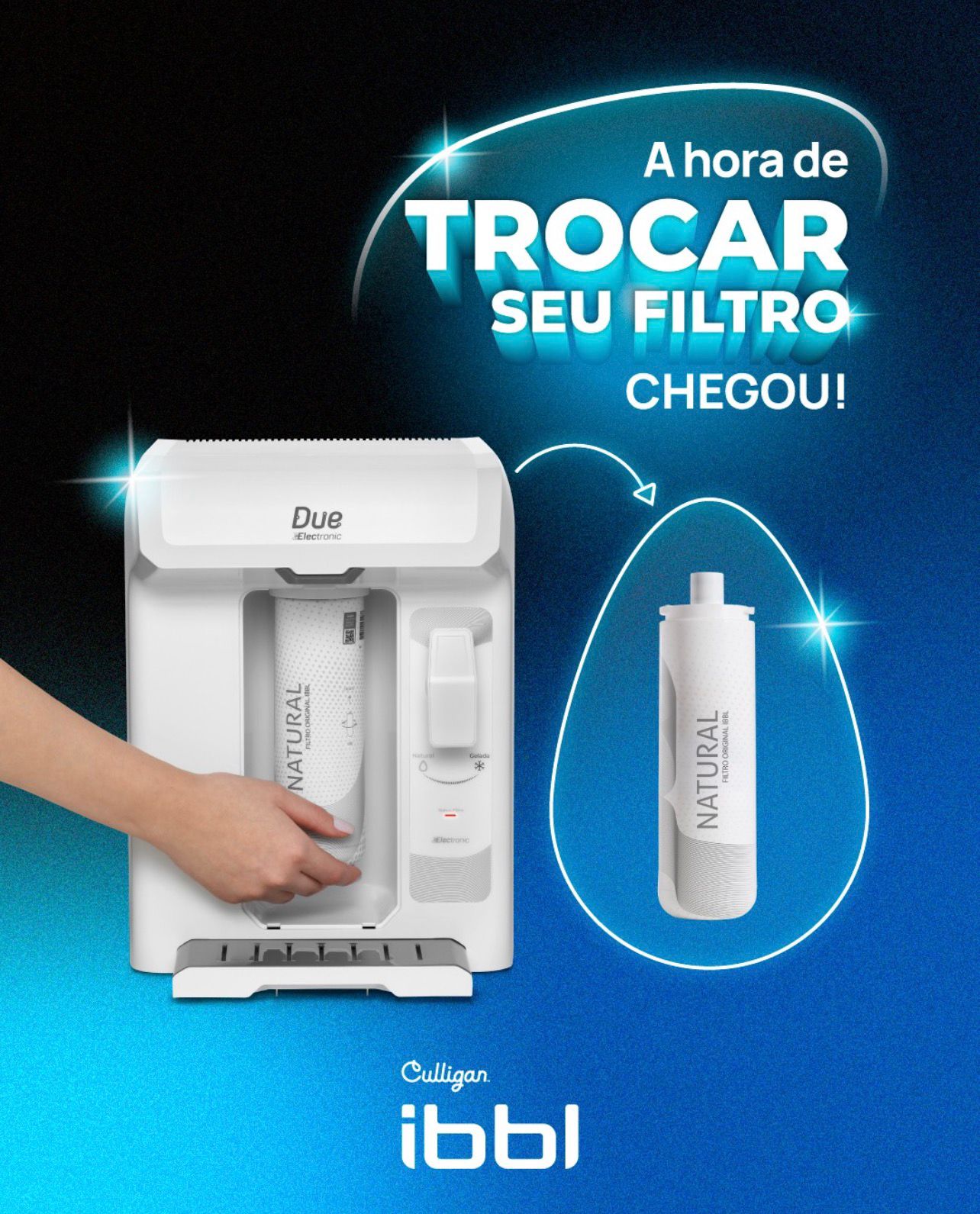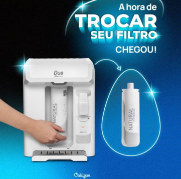 O refil do filtro deve ser trocado, em média, a cada 6 meses.
